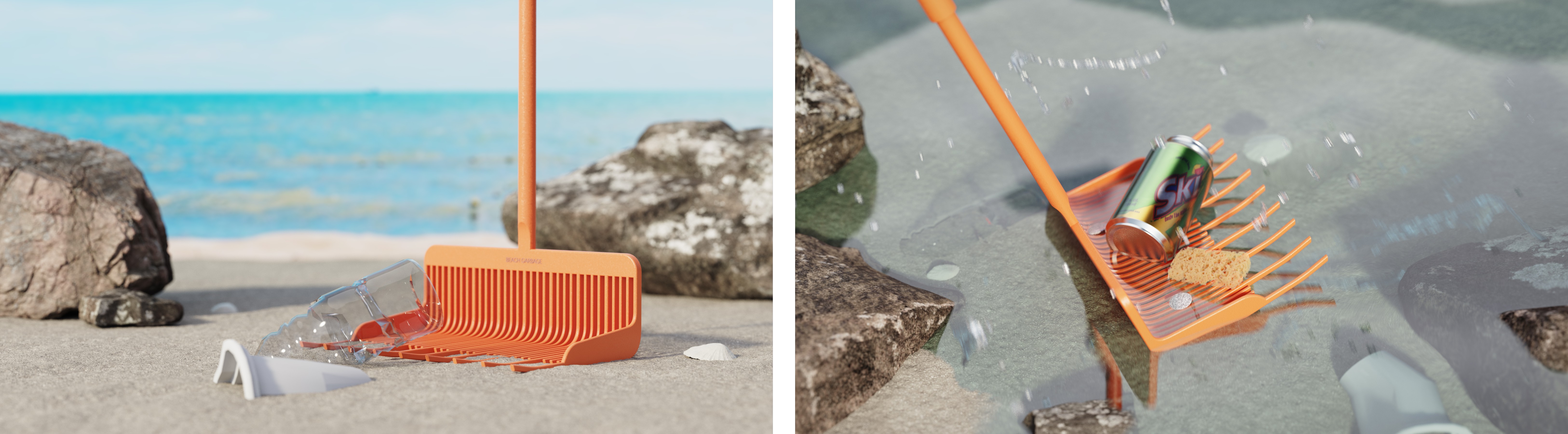 The filter broom can collect the garbage in water and sand, and automatically filter the sand or water for centralized recycling, which solves the problem of low efficiency of existing garbage recycling by clamping. The broom and the filter screen are combined to solve the problem that beach garbage and floating garbage are difficult to collect and improve the cleaning efficiency of special scenes.It can improve the cleaning efficiency of beaches, floating garbage, etc.The garbage is collected into the broom through the shovel action, and the sand or water is filtered out from the gap and then collected in a centralized way.The structure at the front can turn out the garbage buried in the sand or water, and the rear can filter the sand or water.The gap at the rear end is small, which can also ensure the retention of small pieces of garbage.It also can be folded to facilitate carrying and save storage space.