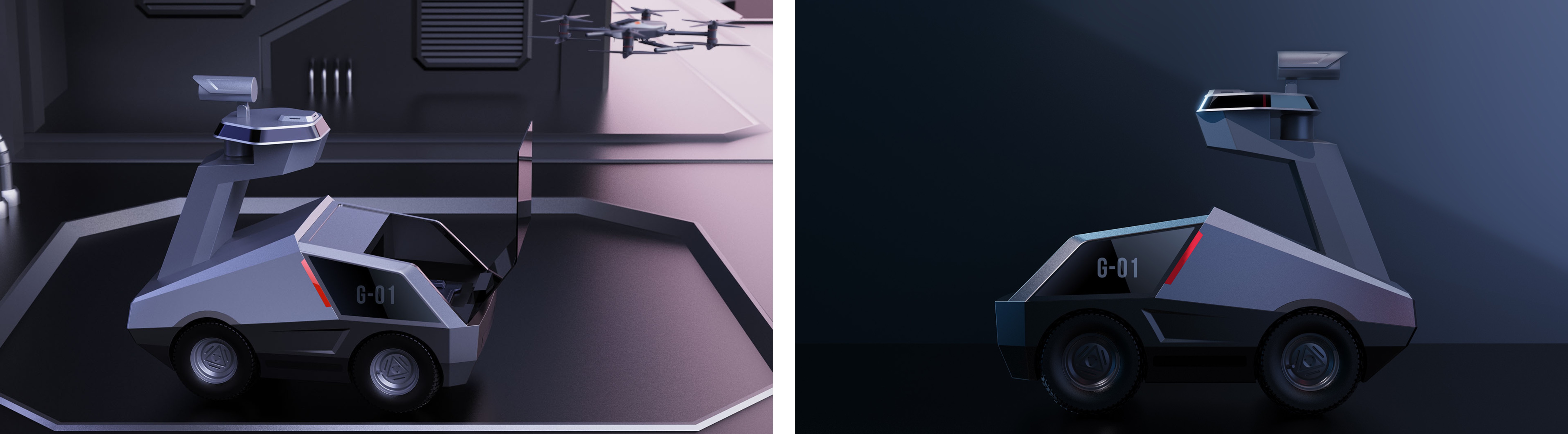 加利弗为客户设计的这台守卫者安防巡逻机器人,颠覆了传统造型。整车运用机甲分割法极具安全感的同时,结构上也起到坚固的作用。